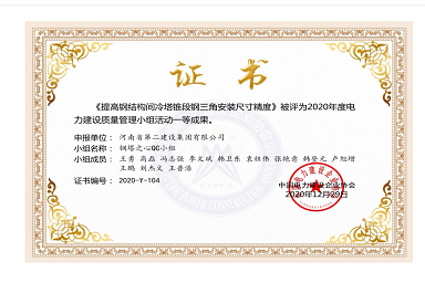 公司QC成果荣登2020年度电力建设质量管理小组